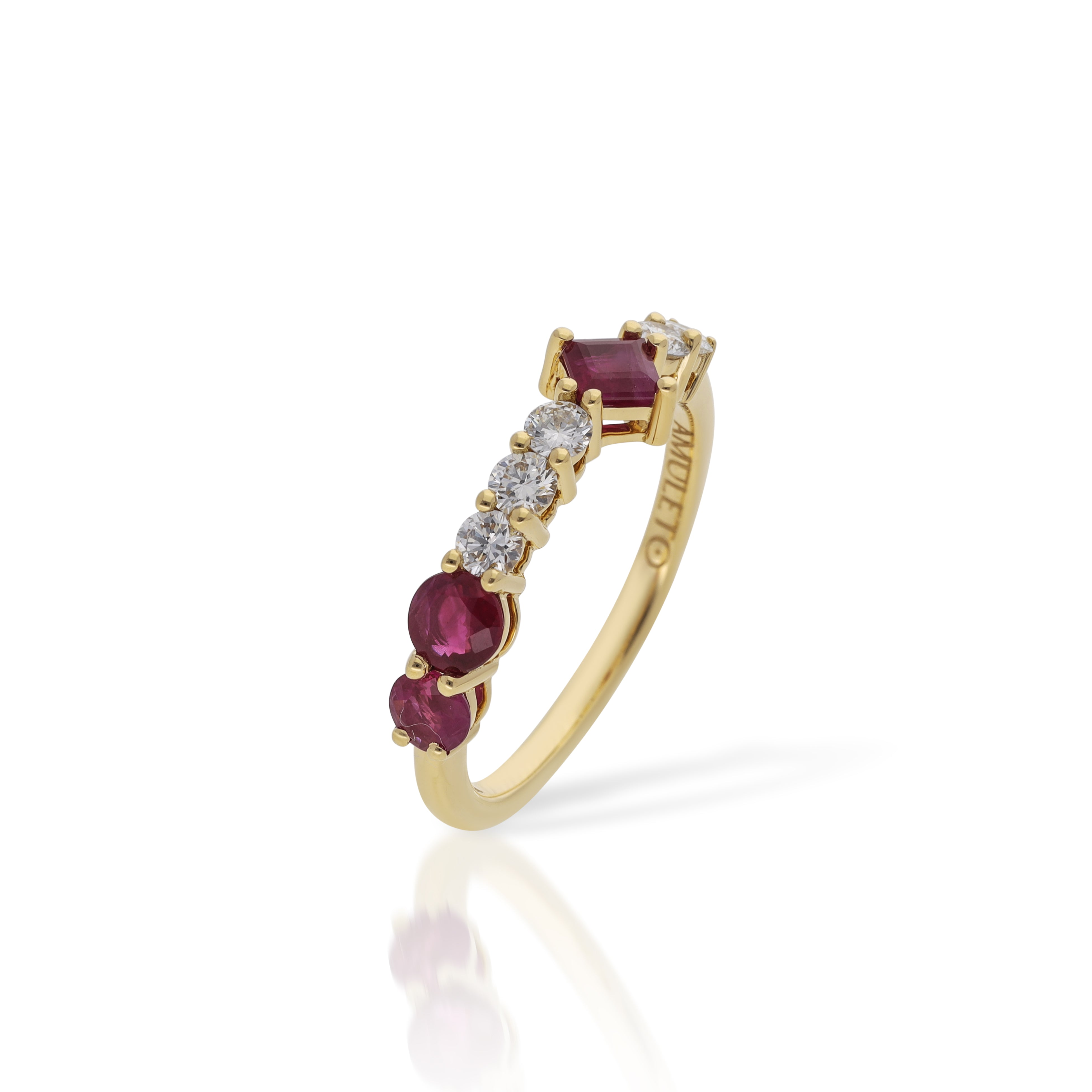 Ruby's strength and color comes from impurities without which it would be colorless and worthless. Diamonds are the toughest. Together they embody the strength to embrace your flaws and your journey!